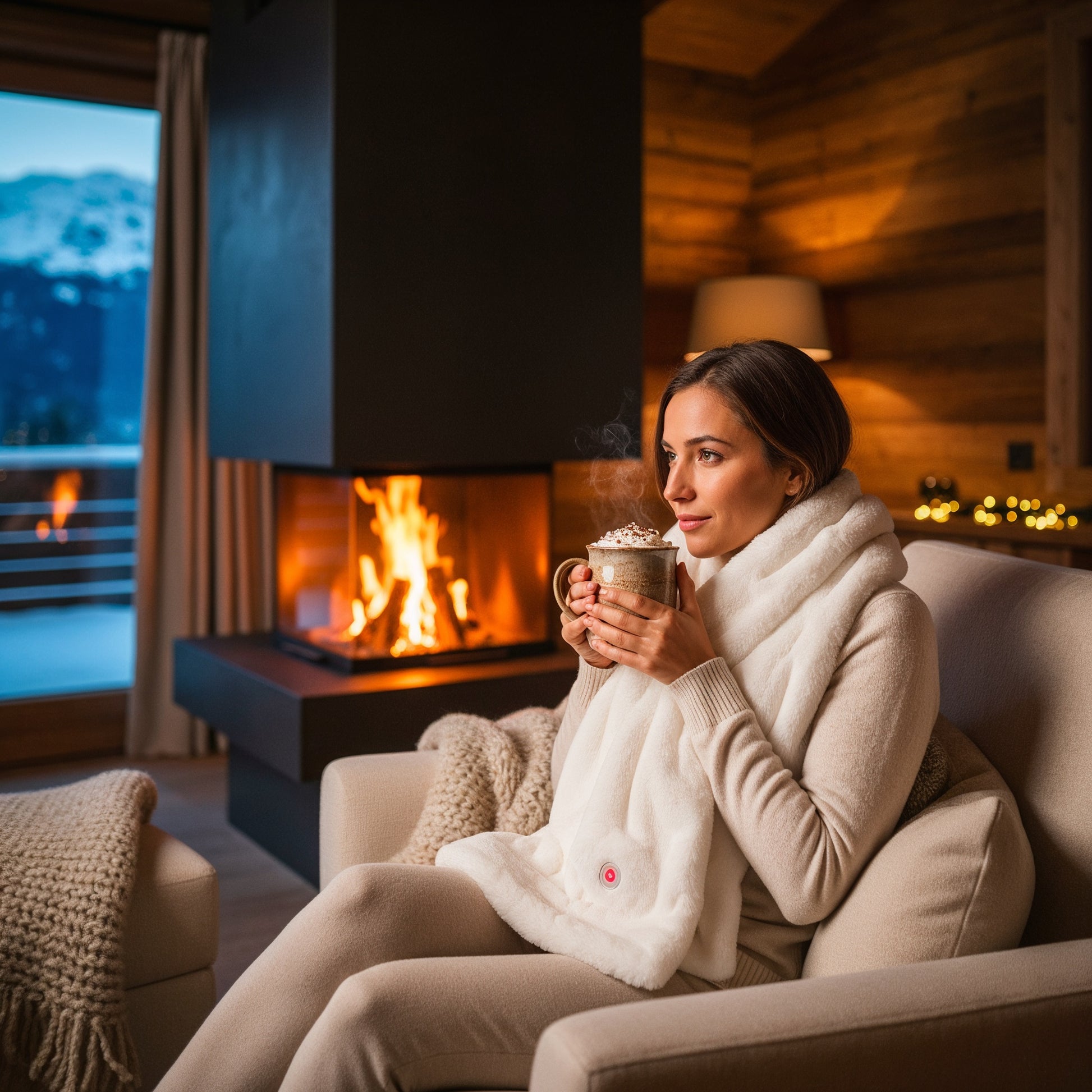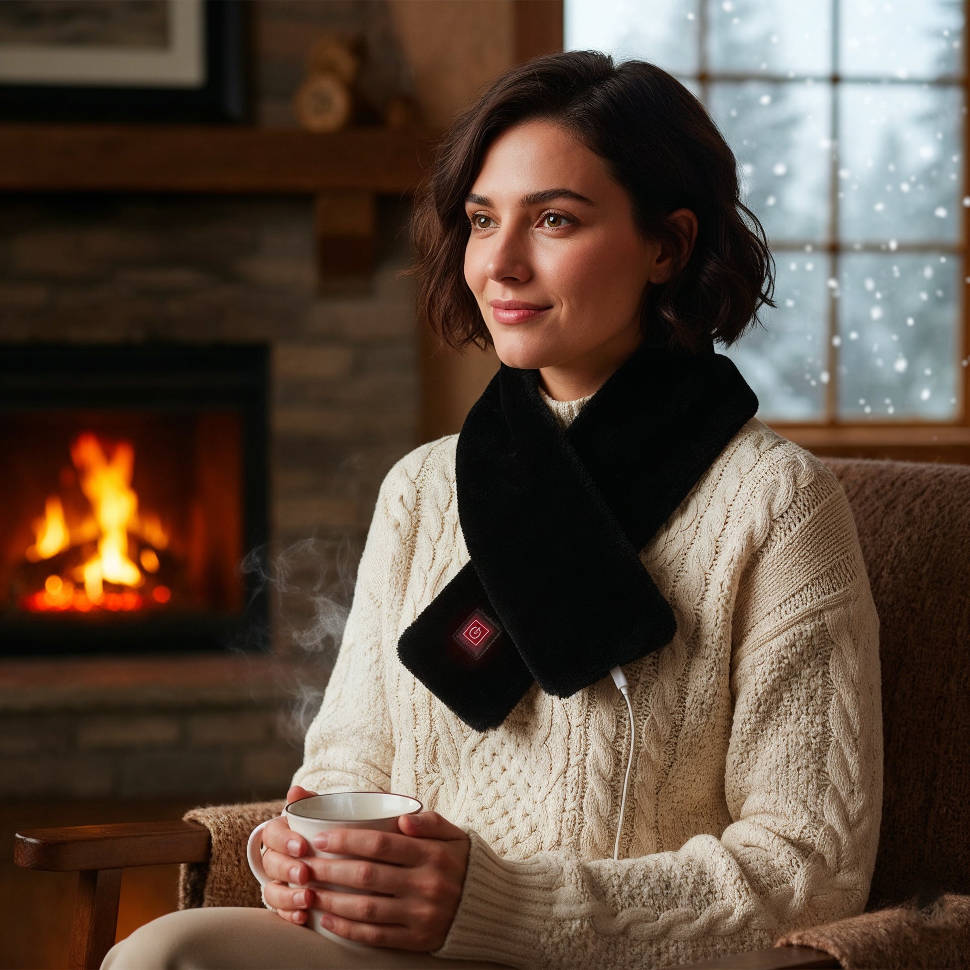 L'écharpe chauffante, disponible en blanc, beige ou noir diffuse une chaleur réconfortante tout en apportant une touche élégante à votre tenue.